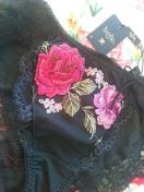 香りたつようなエレガントなバラの花に今にもバラの精が現れそうな華やかさ溢れるコレクション。やわらかな品格と大人の女性の色香を感じさせるお品物です。レースは、美しいグラデーションの2色のバラモチーフを表現するために11色もの色糸を使用した大変贅沢な仕様。