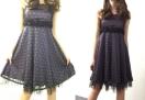 左脇ファスナー開きで、脇のリボンを後ろで結んでウエスト調整出来ます〓。アンダーバスト下には〓薔薇のコサージュ〓がライン状に〓、胸上&スカート裾にもラインラメレース〓が付いていて、シックな色合いなのにキラキラ豪華〓。