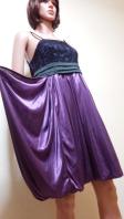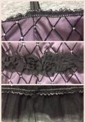 @光沢のあるパープル生地に、Aダイヤストライプ&〓ラメ〓の透ける黒地がON、B全面裏地付きで、スカート裾はフリルが出る、3枚仕立の豪華なドレス〓です〓。