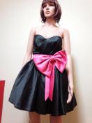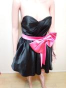 [商品情報] 光沢3Dデカりぼん×カシュクールが綺麗なしっかりとした縫製素材のパテーィドレスです。2段パニエでとても綺麗なシルエットです。 色:光沢ピンク×黒 サイズ:M 平置き⇒胸元幅38cm、脇下からの着丈56cm、ウエスト34.5cm、裾幅114cm 素材:ポリエステル ストレッチ:なし ファスナー:あり ストラップホール:あり パット:あり 他:着用の少ないとても綺麗なお品です。