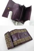 本物のコーチのWホック財布の出品です。素材はキャンバス×レザーでお色は紫系です。 **札入れ×カード入れ8×小銭入れ