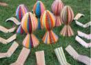 カラフルな紙製の花瓶が一瞬に帽子に変化してしまいます。