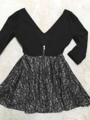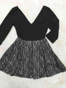 【DURAS黒レースドッキングフレアスカートVカットドレスワンピースチュニック】