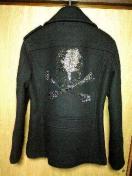 ダブルライダースデザインのPコートのバックに総スワロフスキースカルが入った抜群の輝きと高級感ある逸品です。