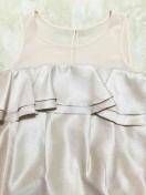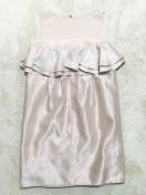 【DURASambientピンクベージュシースルーフリルペプラムドレスワンピ光沢高級】