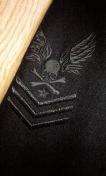 右ショルダー部にスカル刺繍、ボタンも全て存在感あるスカルボタン、裏地はレオパード柄と派手さはなくロエンらしさを適度に取り入れたとても使いやすいPコートです。