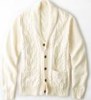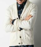コットン、フロントにケーブル編み、ショールカラー、ボタンフロント、フロント両腰にポケット、襟で袖口、裾はリブ仕様、ゆったりとしたシルエットも見逃せないポイント◎!