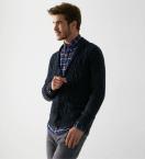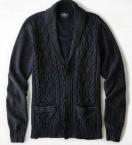 コットン、フロントにケーブル編み、ショールカラー、ボタンフロント、フロント両腰にポケット、襟、袖口、裾はリブ仕様、ゆったりとしたシルエットも見逃せないポイント◎!