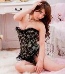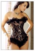 唐草模様の黒地に金の柄が入ったをとても豪華なコルセットです。リボンも黒でとてもセクシーです。画像よりも実物はもっと豪華に見えます。