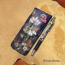 錬金術師の夜の絵に実験レシピの紙を敷いた様なデザインのペンケースです。