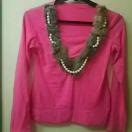 ◆綺麗なショッキングピンクに、襟元にリアルラビットファーが付、それを縫うように、大きめパールのネックレス風飾りがついております。ラビットファーは、取り外し出来ません。が、めちゃ可愛い〜です。