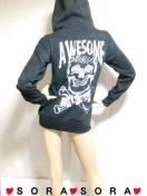 パック全面やフロントにスカルやクロスのプリントが入った存在感抜群のパーカー