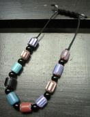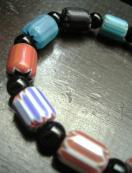 シェブロンビーズとオニキスを紐で編んでブレスレットに仕上げました。
