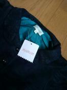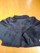 ☆ベルベット調のブラック生地で、エリはレースになっています。三つボタンは真ん中にラインストーンが付いています。