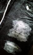 全体にコーティング加工、クラッシュリペア、表面には立体的な皴加工もされていてとてもかっこいいパンツです。