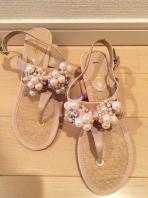 【黒ベルベットベロアFLAG-Jベルト式白パールスムースサンダル結婚式パーティ】
