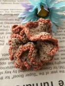ラメ入りコットン糸でボリュームいっぱいのシュシュを編みました。