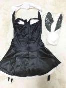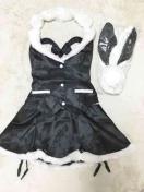【バニーガールコスプレ衣装黒白bunnyイベントインポート新品ホルターワンピースドレス白フワフワ】