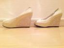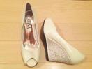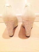【白ウェッジソールオーロララインストーンキラキラオープントゥパンプス新品レザー調LATINAビジュー】