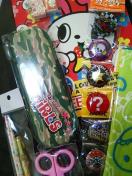 ハサミ テープ ハンドタオル シャープペン 鉛筆 ノート ペンケース シール2枚 缶バッジ6個 小物入れ セロテープ