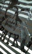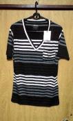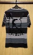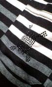 色の異なる配色デザインのボーダー柄でバックにはスカルプリントがありその周りにもブラックスワロを使用。