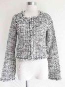 【白黒バイカラーミックスツイードラメジャケットアウターキラキラリミットレスラグジュアリーフリンジLIMITLESSLUXURYチェーン】