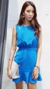 DABAgirl青ブルーオープンショルダーカットワークフレアワンピース韓国ドレス締切日時