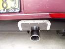 マフラーエキゾーストトリムメッキ+カーボン柄です。マフラーの上のバンパーに貼るアイテムです。貼るだけですので愛車のリアーを簡単にイメチェン出来る他、汚れを防ぐ効果もあります。