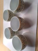 有田焼の湯呑み茶碗です。5客セットです。未使用です。箱は在りません。薄い黄色に梅(?)の花柄です。十分ご理解された方のみご検討くださいm(_ _)m