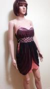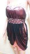 〓[商品情報] 胸ビジュ盛りAチュール重ねが可愛いドレスです。 色:光沢ピンク×黒 サイズ:F 平置き⇒胸元幅34cm、脇下からの着丈71cm、裾幅47cm 素材:ポリエステル ストレッチ:あり ファスナー:横 パット:あり 他:新品タグ付きです。