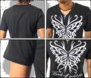 フロントのバタフライがインパクト大のVネックTシャツ