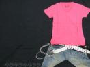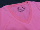 ●浅めのVネックに色鮮やかで綺麗なピンクカラーのカジュアルTeeシャツ