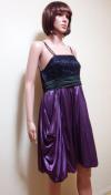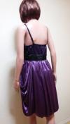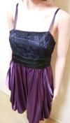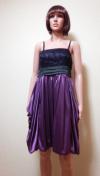〓[商品情報] 胸元サテンレース&プリーツにスカート部はドレープ&バルーンの綺麗なドレスです。色:光沢パープル×黒 サイズ:F 平置き⇒胸元幅39cm、脇下からの着丈73cm. 裾幅72cm 素材:ポリエステル 背ゴム:あり ストレッチ:あり ファスナー:横 パット:なし 他:着用の少ないとても綺麗なお品です。
