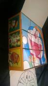 残念ながら、息子がしまう際にシールをはさみこんでしまったらしく塗り絵用パズルの1枚分に角が折れております。画像にてご確認下さい。