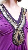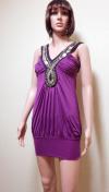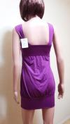 〓[商品情報] バイカラーの襟から胸元までメタル調デコルテ盛りAのドレープが綺麗なミニドレスです。 色:パープル×黒 サイズ:M 平置き⇒肩幅28cm、胸元幅32cm、脇下からの着丈59cm、裾幅36cm 素材:ポリエステル ストレッチ:あり 背ゴム:あり ファスナー:なし パット:なし 他:新品タグ付です。