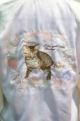後ろ側にブランドロゴ、ハート、リボン、ビジュー、トラ猫の刺繍