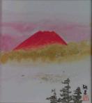絵画 日本画 小谷津雅美『赤富士』真作保証