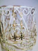 ■ゴールド雪結晶クリスタル・モルガナイトスワロ&ベージュシルキーパール樹脂フック☆■