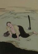 絵画 ポショワール 藤田嗣治 養老の滝・日本昔噺より《3》巨匠 真作保証