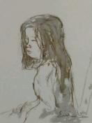 自身の娘さんを描くことで人気作家の大津英敏の水彩画です。