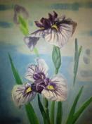 絵画 油彩 安宅乕雄『花菖蒲(加茂川)』真作保証