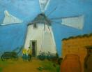 ボードに油彩。裏面にも氏の絵画が描かれています。裏板を外した写真(写真4参照)。