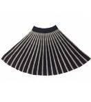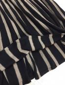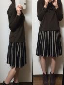 色は、ベージュと黒の使いやすいストライプ〓。裾に向かって編目が広がるストライプなので、腰マワリはスッキリ見え裾の動きはたっぷりしなやか〓。膝が隠れる上品丈できちんと感も表現〓。