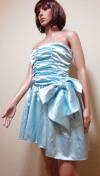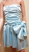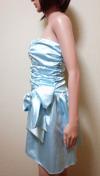 〓[商品情報] くしゅAが綺麗なトップに腰デカリボンがHiインパクトなドレスです。ふんわりボリューミーなスカートラインも素敵。 色:光沢アクア サイズ:M 平置き⇒胸元幅37cm、脇下からの着丈70cm、ウエスト34cm、裾幅106cm 素材:ポリエステル ストレッチ:あり ストラップホール:あり ファスナー:背 パット:無し 裏生地:あり 他:着用の少ない新美品です。