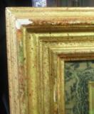 額縁はカケ、キズ、スレがあります(写真参照)。尚、作品が額縁から取り外せない使用上、ガラスの内側に少し汚れがあるのですが、拭き取れません。