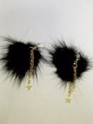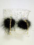 ■ジェットミンクファーチェーンスター&シルキーパール&クリスタルイリデッセントグリーンスワロ樹脂フック☆■