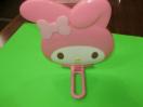 マイメロのキュートなマイメロ形スタンドミラー、ハンドルがスタンドになるから2WAYで使えて便利