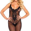 足先から肩紐までのシンプルなボディストッキングの胸元に花柄の素敵な飾りがついたお品です。