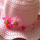 イチゴとサクランボのレースリボンとビーズデザインの可愛い帽子です♪