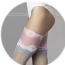 履き口が15センチと広めで、シリコンのストッパーが付いているためガーターなしでもずれ落ちにくいです。